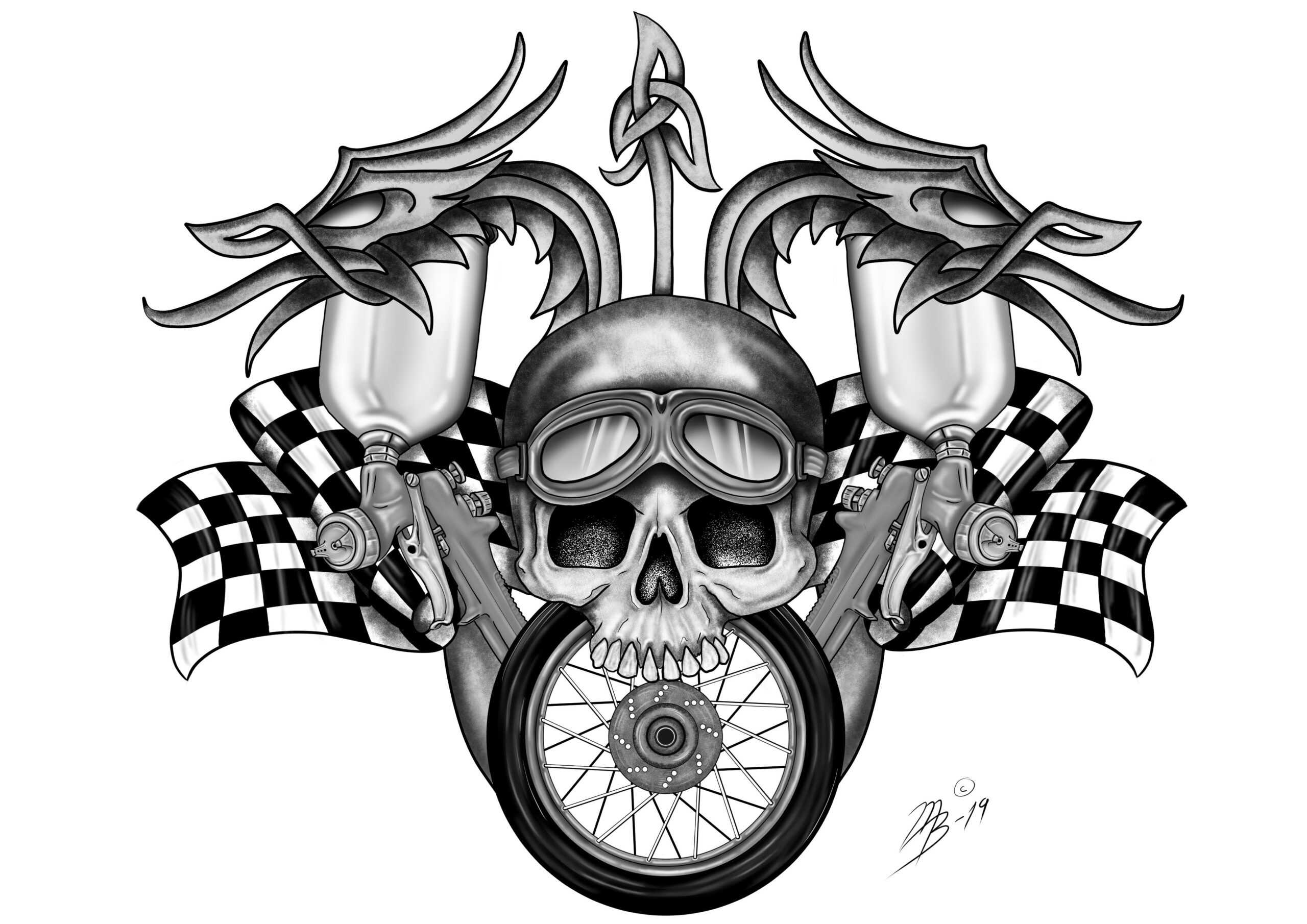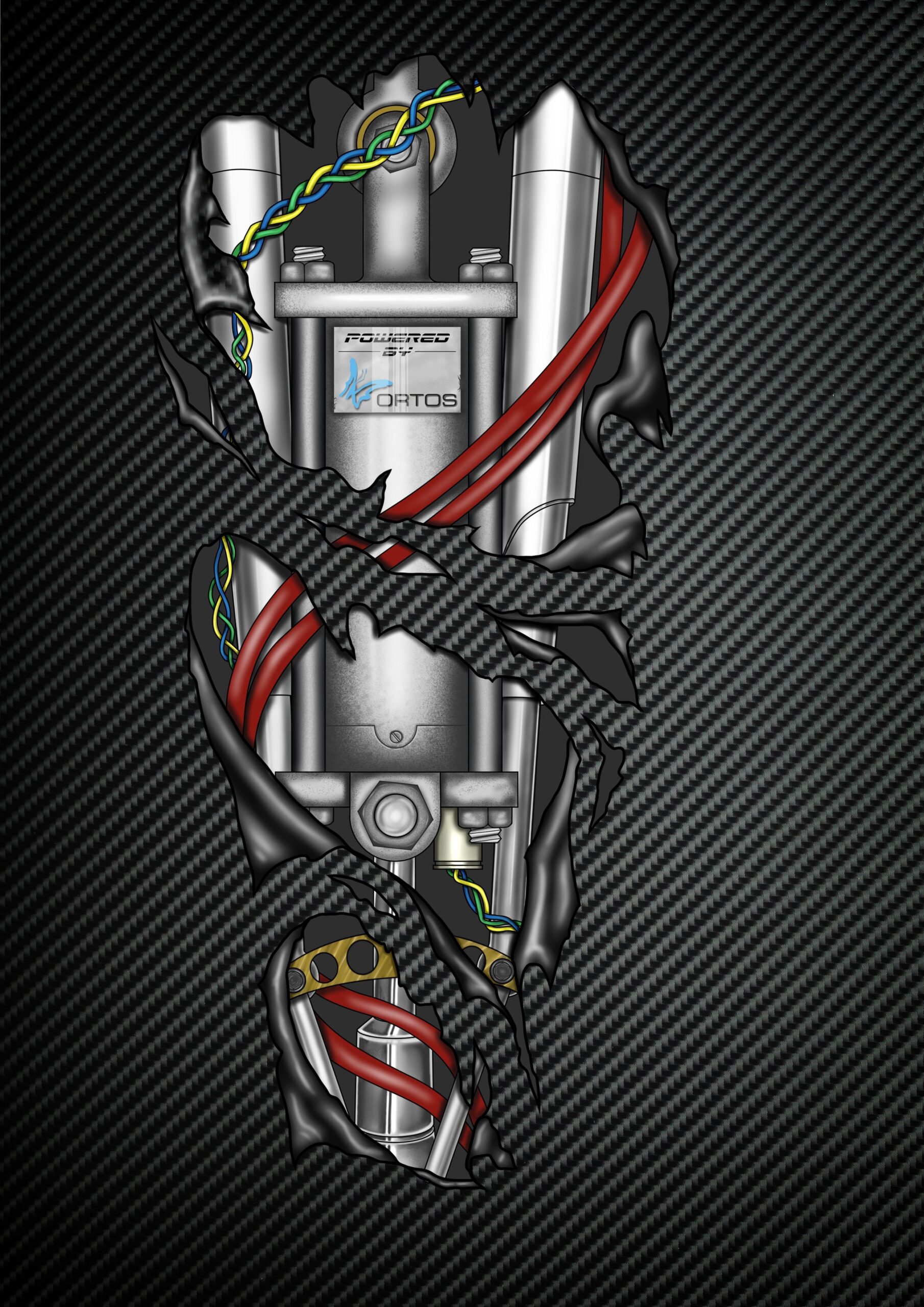 Armprotesens hylster har et kulfiber-look og ser man nærmere efter, vil man kunne se, at det ligner, at man kigger direkte ind til mekanikken. Det er Matteos eget design, og det er ikke det eneste, han har lavet. Med et enormt bagkatalog af tegnede portrætter, 3D-designs på computeren, store air brush-kreationer, læderarbejde mm. finder man hurtigt ud af, at Matteo er en kreativ sjæl med sans for detaljen.