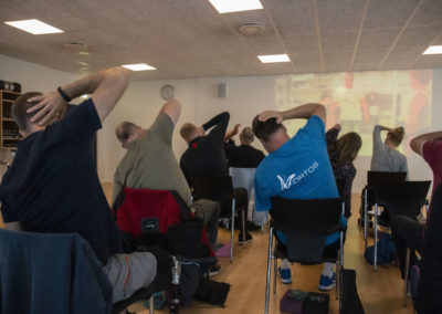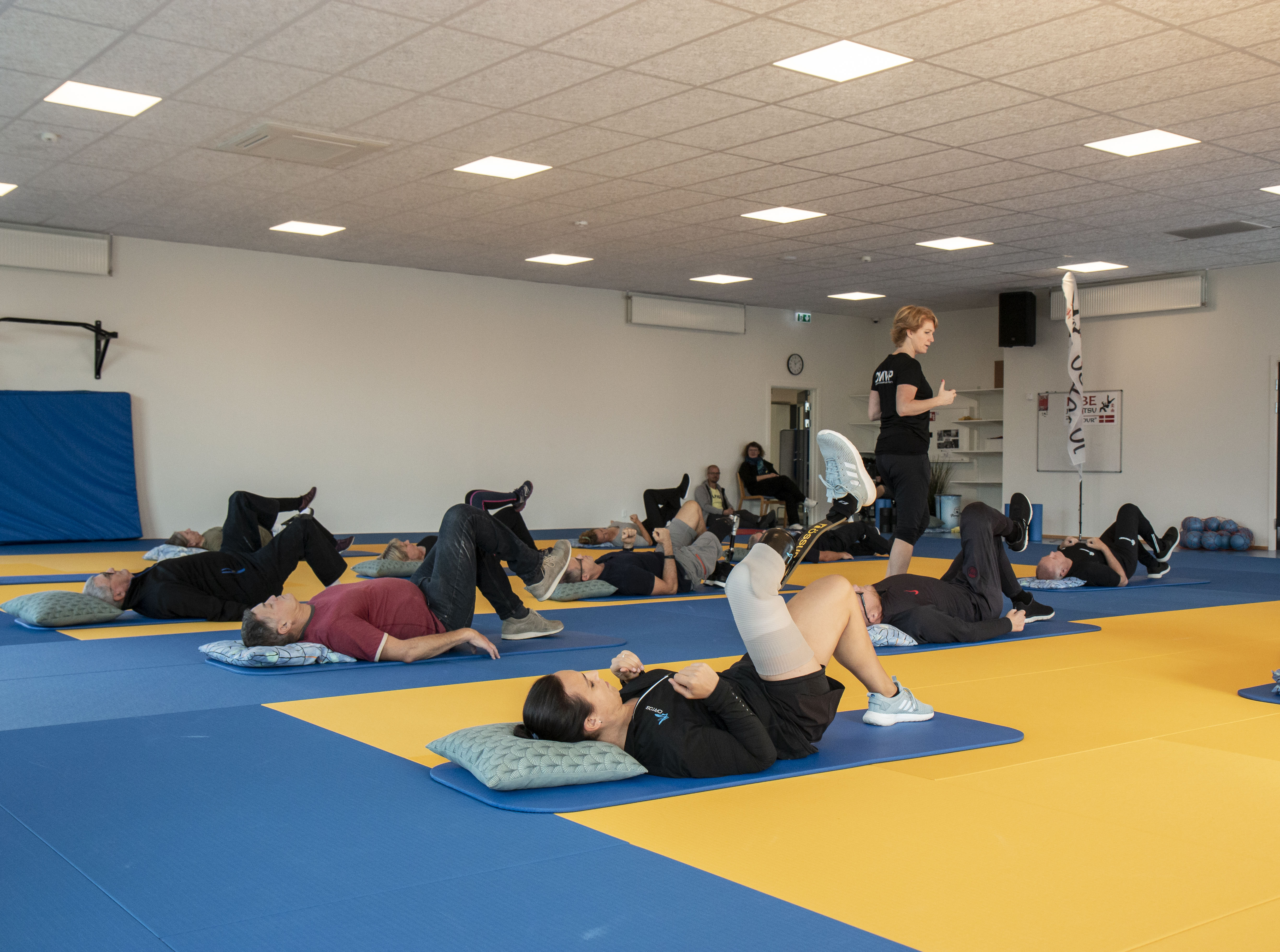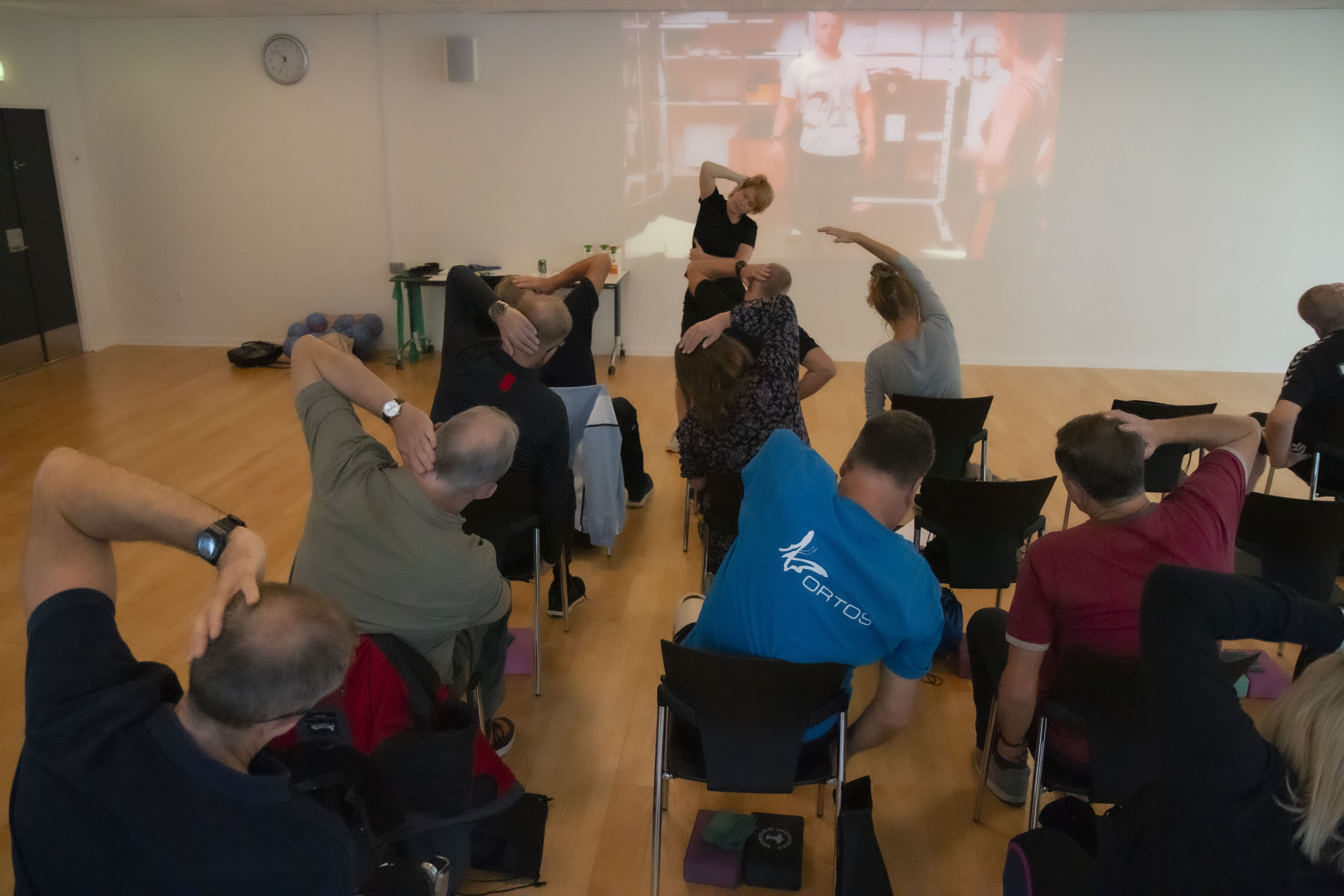 I løbet af formiddagen fortsatte det fysiske program, men der var også plads til at puste ud og få en snak med de fagkyndige Ortos-bandagister fra Kolding og Esbjerg.