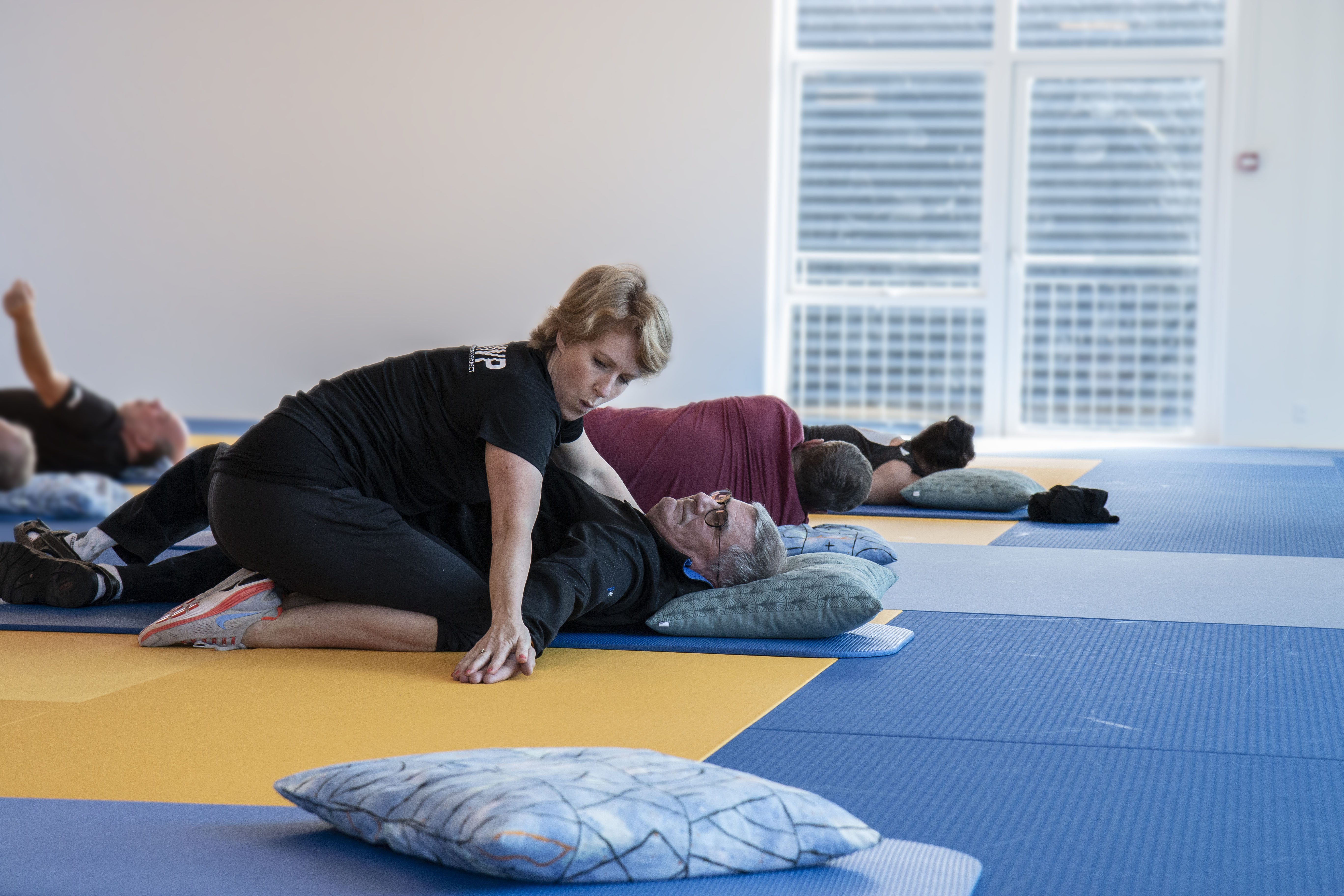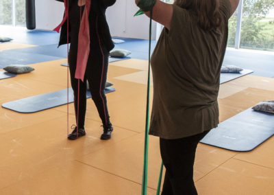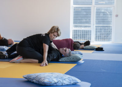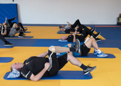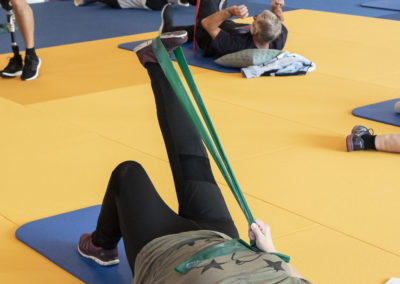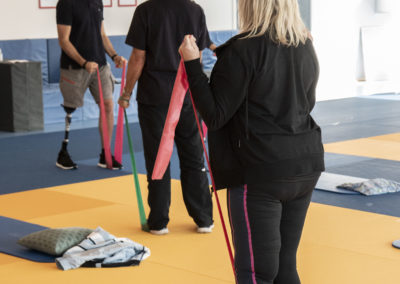 Med Jojo Bowman i spidsen for den første del af programmet, var dagens deltagere i kyndige hænder. Jojo er projektleder for Danish Wounded Warriors Project, som genoptræner sårede soldater ved brug af pilates. Hun har derfor solid erfaring med at træne benamputerede – og det kunne mærkes. Med koncentrerede blikke og tungen lige i munden hos de engagerede deltagere, tør vi godt sige, at der blev fyret op for alle muskelgrupper – selv de små dybtliggende muskler, vi slet ikke vidste, vi havde, men som vi bruger, hver gang vi tager et skridt. Der er ingen, der siger, at pilates er let!